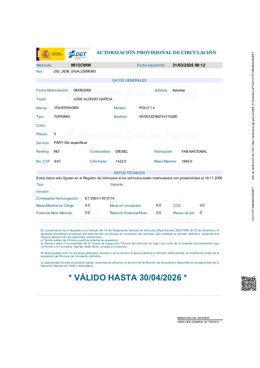 | Nº plazas |
